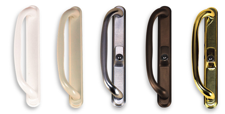 Handle: High-end handle for larger and smaller doors alike, gives a wide grip area and great appeal. They come in two standard colors (white and beige) and three premium finishes (satin chrome, oil-rubbed, classic brass). The Premium finishes are only available on the Premium Series Sliding Door and come with a keyed lock. The standard finishes offer an option for exterior key access. Brass handles are standard on doors with wood grains or any two tone color door.