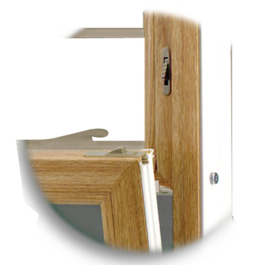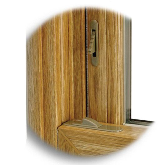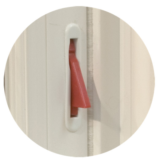 Child Safety Latch: The child safety latch reduces the risk of a child falling out of your window. An optional feature, it is put in place of one (not both) of the ventilation latches. It is always in the engaged position therefore to open the window fully you must push in the child safety latch.